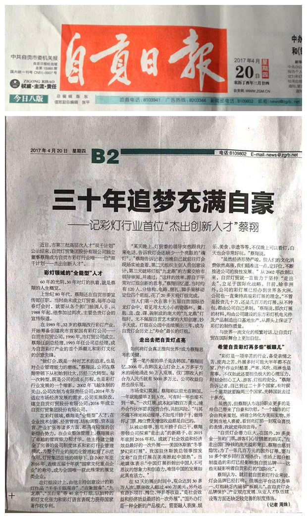 近日,《自貢日?qǐng)?bào)》記者對(duì)蔡翔進(jìn)行了專(zhuān)題采訪報(bào)道。