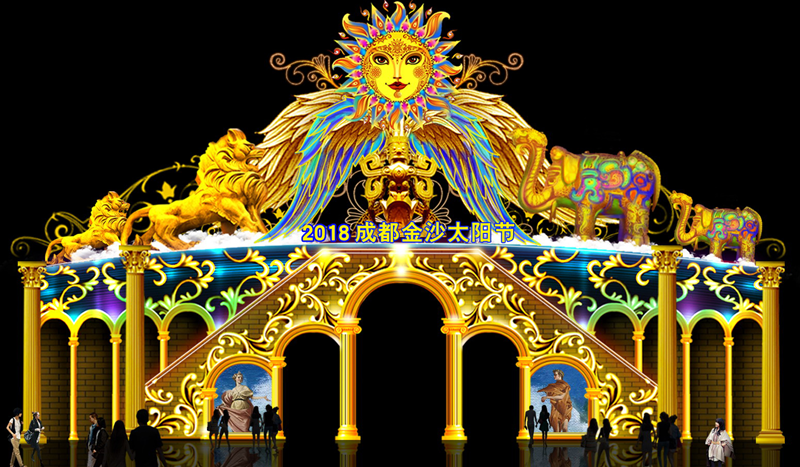由自貢燈貿(mào)集團(tuán)股份有限公司承制的2018成都金沙太陽(yáng)節(jié)燈展目前已進(jìn)入緊張有序的現(xiàn)場(chǎng)安裝階段。本次太陽(yáng)節(jié)共分《龐貝文明》、《古蜀文明》、《太陽(yáng)文化》、《傳統(tǒng)民俗》、《成都與世界》五大特色主題板塊共六十余組特色燈組,每一板塊都深刻卷寫(xiě)著古蜀文明和龐貝文化的悠久與輝煌。