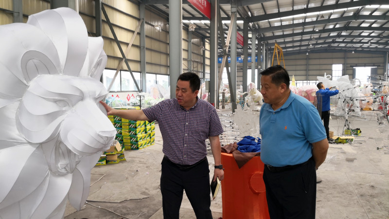 7月20日上午,四川省人民對(duì)外友好協(xié)會(huì)會(huì)長(zhǎng)趙平一行在自貢市外事僑務(wù)局局長(zhǎng)劉世勇的陪同下蒞臨自貢燈貿(mào)集團(tuán)股份有限公司對(duì)公司2018年境外燈展項(xiàng)目的方案和制作進(jìn)行考察調(diào)研。