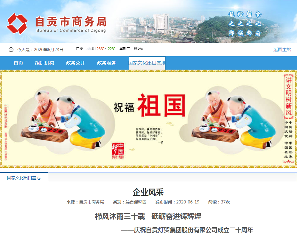 圖二:自貢市文化旅游局微信公眾號自貢文化旅游慶祝自貢燈貿(mào)集團(tuán)股份有限公司成立三十周年