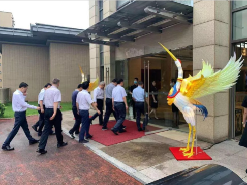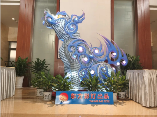 為彰顯自貢彩燈文化名片,市政府有關部門精選自貢燈貿集團股份有限公司自有品牌“東方彩燈”出品的兩組具有傳統(tǒng)彩燈藝術特色燈組—“瑞鶴”、“諦聽”呈放接待現場。