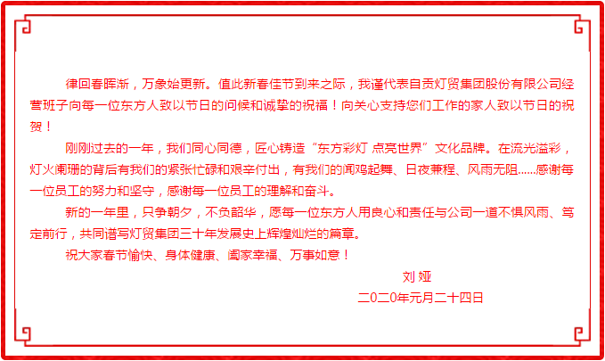 自貢燈貿(mào)集團(tuán)股份有限公司董事長(zhǎng)劉婭 新春致辭