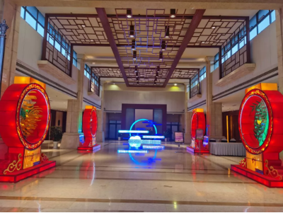 東方彩燈·時(shí)事新聞|東方燈品亮相第三屆自貢國(guó)際恐龍燈光節(jié)接待現(xiàn)場(chǎng)