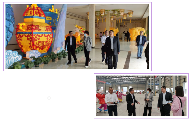 燈貿集團董事長劉婭、執(zhí)行總裁陶建軍陪同調研團一行參觀了東方彩燈(出口)基地,觀摩彩燈制作過程,全面了解了彩燈工藝流程。