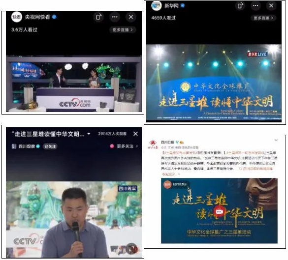 據(jù)了解,“走進(jìn)三星堆 讀懂中華文明”主題活動(dòng)消息發(fā)布以來,人民日報(bào)、新華社、中央廣播電視總臺(tái)和泰晤士報(bào)、聯(lián)合早報(bào)、共同社等50余家中外主流媒體進(jìn)行了報(bào)道和轉(zhuǎn)載,其中,央視網(wǎng)、央視新聞、人民日報(bào)、新華社、四川日報(bào)、四川觀察等多家媒體進(jìn)行了活動(dòng)直播,引起海內(nèi)外網(wǎng)友廣泛關(guān)注。
