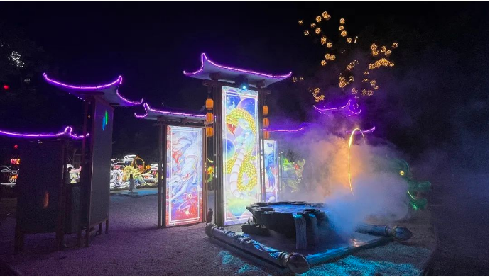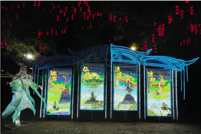 本次燈展再掀“尋蹤仙文化之旅”風(fēng)潮。開封萬歲山·大宋武俠城內(nèi),游人如織,全新仙俠場(chǎng)景,為諸位仙友打造出沉浸式仙俠文化彩燈光影盛宴,通過瀟灑肆意的仙俠世界與傳統(tǒng)彩燈文化多維度結(jié)合的方式,以全新的模式詮釋中國傳統(tǒng)文化的璀璨魅力,解鎖江湖游玩的不同體驗(yàn)。